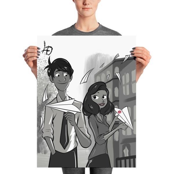 A statement in any room. These matte, museum-quality posters are printed on durable, archival paper. Let love fill the air with this piece from the Disney short “Paperman” as George and Meg share a tender moment together.